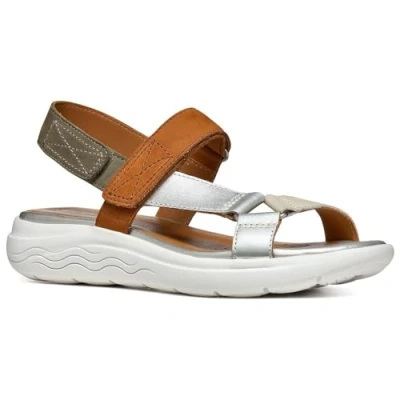 Geox Women's D Spherica Ec5w A Sports Sandal, Cognac Silver, 7.5 UK