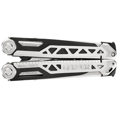 General description The Gerber Dual Force Multi Tool features a layered construction that provides 3x the jaw strength and 2x the force, making it capable of handling any task with ease. It includes 13 essential tools for various applications. Technical specifications Closed Length: 118 mm Blade Length: 8.2 cm / 8.5 cm Weight: 340 g Usage Small fastener pliers Regular pliers Adjustable, two-size slip joint jaw Wire cutter Wire stripper 3.25 in plain edge blade 3.35 in center-drive axis tech Saw Fine/coarse file Chisel edge #1 and #2 cross drive Medium flathead driver 8 in / 20 cm ruler Lanyard hole