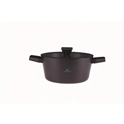Gerlach NK340 Granitex Coating Pots with Lid Induction Electric Gas Ceramic Cookers Black 24cm 4.4L, Aluminium