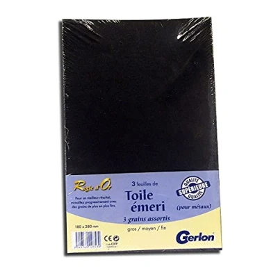 Emeri fabric for sanding metals. The kit contains the various sheets (coarse, medium and fine) required for high quality sanding. Set of 3 sheets (coarse, medium and fine). For better results, work gradually with increasingly finer grains., Manufacturer: GERLON