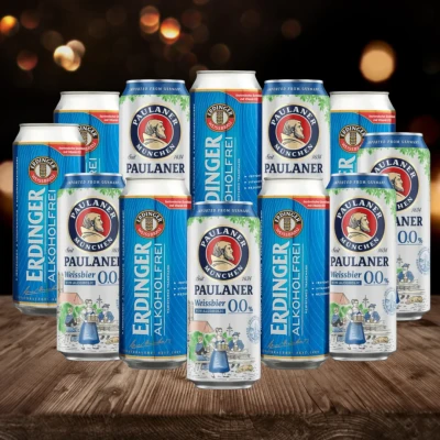 German Alcohol Free Wheat Beer Paulaner & Erdinger Mixed Case 500ml Cans 0.0% ABV (12 Pack)