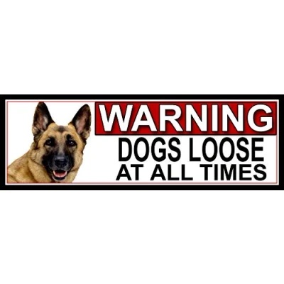 German Shepherd WARNING DOGS LOOSE AT ALL TIMES METAL GATE SIGN 266mm x 87m. (924H2)