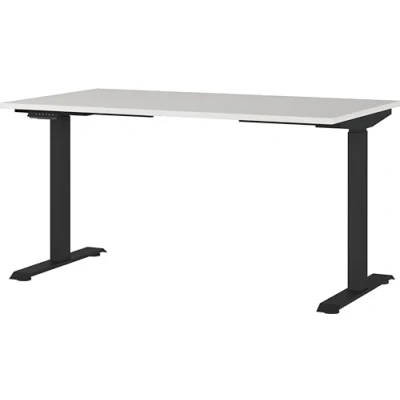Assembled dimensions approx. 140 x 120 x 80 cm (WxHxD) Electrically height-adjustable desk with two T-feet; table top (can hold up to 80 kg), height adjustable from 72-120 cm Top floor made of melamine resin-coated chipboard in the color light grey, frame made of powder-coated metal in black Scratch-resistant and durable surface coating, shock-resistant and impact-resistant edges, ergonomic table with electrical height adjustment, choice of different colors possible, environmentally friendly, packaged without styrofoam. All Germania furniture is developed and manufactured in Germany.