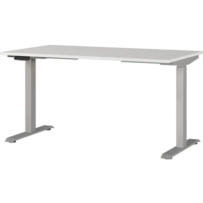 Assembled dimensions approx. 140 x 120 x 80 cm (WxHxD) Electrically height-adjustable desk with two T-feet; table top (can hold up to 80 kg), height adjustable from 72-120 cm Top floor made of melamine resin-coated chipboard in the color light grey, frame made of powder-coated metal in silver Scratch-resistant and durable surface coating, shock-resistant and impact-resistant edges, ergonomic table with electrical height adjustment, choice of different colors possible, environmentally friendly, packaged without styrofoam. All Germania furniture is developed and manufactured in Germany.
