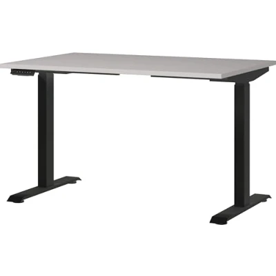 Assembled dimensions approx. 120 x 120 x 80 cm (WxHxD) Electrically height-adjustable desk with two T-feet; table top (can hold up to 80 kg), height adjustable from 72-120 cm Top made of melamine resin-coated chipboard in the color cashmere, frame made of powder-coated metal in black Scratch-resistant and durable surface coating, shock-resistant and impact-resistant edges, ergonomic table with electrical height adjustment, choice of different colors possible, environmentally friendly, packaged without styrofoam. All Germania furniture is developed and manufactured in Germany.