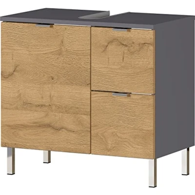 GERMANIA DIE MÖBELMACHER Wash Basin Cabinet, Graphite/Grandson Oak, 60 x 56 34 cm