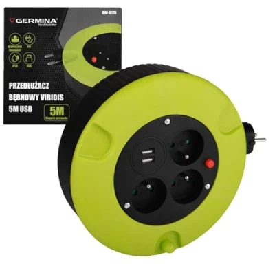 The Germina extension cord is the professional choice for a level of performance and innovation: a portable cable reel with an extension cord with three outlets and two USB outlets with child safety lock With ergonomic winding crank: allows you to wind the cable quickly with greater speed and control, with the help of the integrated cable guidance THERMAL POWER BUTTON - Prevents cable from overheating when fully coiled and allows reset when off The extension cord is compact in size, portable and easy to carry wherever you go, Weight: 2.20462262 Pounds, Manufacturer: GERMINA DER ELECTRIKER