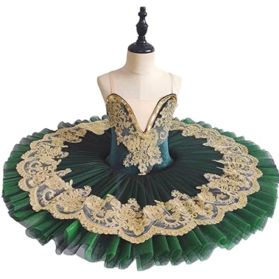 GeRRiT Children's Ballet Professional Tutus Kids Adult Swan Lake Pancake Tutu Women Girl Ballerina Costumes Dance Ballet,Green,150