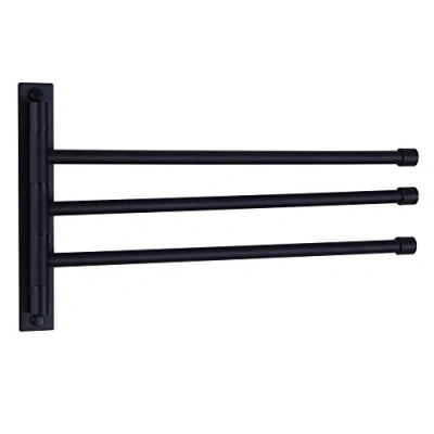 GERZWY Bath Towel Holder Swing Out Bar SUS 304 Stainless Steel Bathroom Hand Rack 3 Folding Arm Swivel Hanger Wall Mount Matte Black HYG03 BK