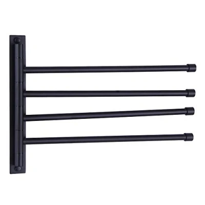 GERZWY Swivel Towel Bar SUS 304 Stainless Steel 4 Arm Bathroom Swing Hanger Rack Holder Storage Organizer Space Saving Wall Mount Matte Black HYG04 BK