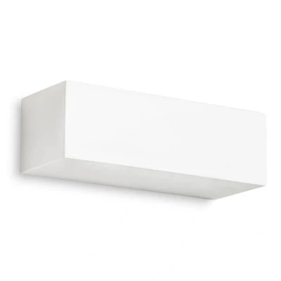 The fitting is made of plaster and has a white finish. This lamp is cuboid shaped and when mounted, the light shines out in an upwards direction creating a glow on the wall behind. Designed to blend in with its surroundings, this lamp is a great option for your lighting needs.