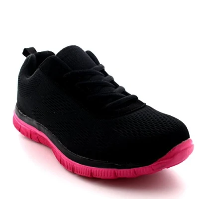 Get Fit Womens Mesh Go Running Trainers Athletic Walk Gym Shoes Sport Run Black/Fuschia UK4/EU37 BS0069