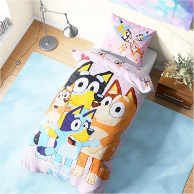 Get Trend Bluey Single Duvet Cover Set for Kids & Teens, Reversible Bedding Pillowcase Boys Girls, Bedroom Accessories, Anime Gifts (Multi Bluey, Single)