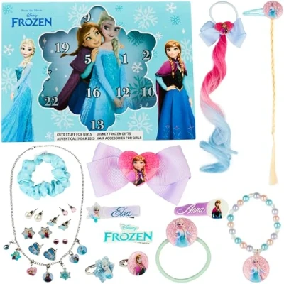 Get Trend Disney Frozen Advent Calendar 2025 for Girls, Hair Accessories & Jewellery Christmas Countdown, Clips Scrunchies, Xmas Girls Gifts (Blue Frozen)