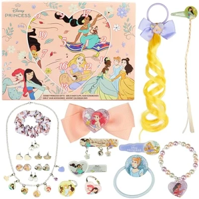 Get Trend Disney Princess Advent Calendar 2025 for Girls, Hair Accessories & Jewellery Christmas Countdown, Clips Scrunchies, Xmas Girls Gifts (Pink Princess)