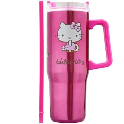 Get Trend Hello Kitty Sanrio Insulated Tumbler with Straw 940ml/32oz, Stainless Steel Travel Mug for Hot & Cold Drinks, Metal Water Bottle, Coffee Cup (Pink Kitty)