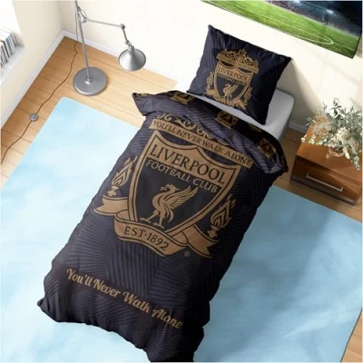 Get Trend Liverpool FC Single Duvet Cover Set, Reversible Football Themed Bedding Set with Pillowcase, Ultra Soft Durable Quilt (Black Liverpool, 135x200cm)