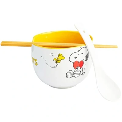 Get Trend Peanuts Snoopy Ramen Bowl Set 20oz/600ml, Japanese Rice Noodles with Ceramic Spoon & Bamboo Chopsticks, Microwave Safe, Gifts for Adults (Multi Snoopy)