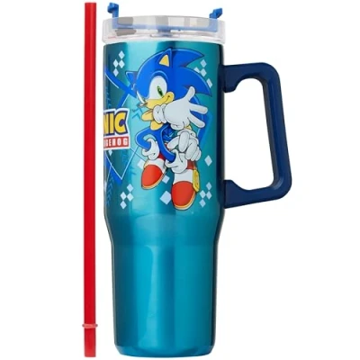 Get Trend Sonic The Hedgehog Insulated Tumbler with Straw 940ml/32oz, Stainless Steel Travel Mug for Hot & Cold Drinks, Metal Water Bottle, Coffee Cup (Blue Sonic/Shadaw)
