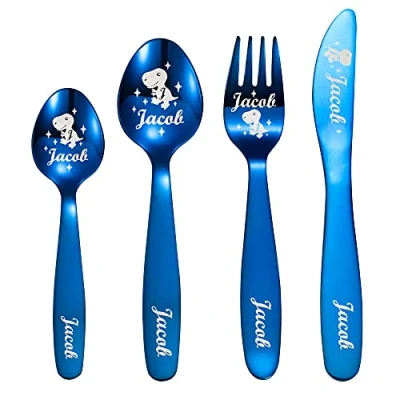 【Unique】: All kids will be excited to have cutlery like their parents, and that is their size—especially designed for children’s size.Perfect set for all meals. Great convenience. Kids can hold the cutlery easily. 【Creative Gift】: Fun engraved design for all ages and genders, they're the perfect gift for new parents, baby showers, baby's 1st birthday, Easter, Christmas or any events. 【Small and Dainty】: Material: Food Grade Stainless Steel & Ink, Size&weiGht: Fork: 150MM (6 INCH), 37G/Spoon: 150MM(6 INCH), 43G, Tea Spoon: 125MM(5INCH), 31G, Knife: 158MM(6.72 INCH), 56G. 【Customised Steps】:1- Choose Style and Tableware combination, 2- Click the yellow button on the right "Customise Now", 3- Choose Colour, 4- Choose the Pattern Type, 5- Text in the Name. 【What you get】: 1- A Set of Personalised Children Flatware(Spoon+Fork+Knife+Tea Spoon), 2- An exquisite gift box package, 3- 90 Days free replacement for quality problems, 4- Friendly customer service., Manufacturer: Getname Necklace
