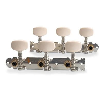 Machine head without lyra, Shaft distance 35 mm, diameter 6 mm Gear ratio 14:1, Nickel plated metal shafts for steel strings Double drilled to facilitate feeding in the strings, Cream coloured synthetic buttons