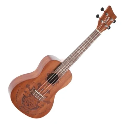 Authentic design: The GEWA Concert Ukulele Manoa KT-CO-MEXICO impresses with its Sapelli top with unique laser design for a distinctive look. High-quality workmanship: Back, sides made of Sapelli and fingerboard, bridge made of laurel guarantee excellent sound quality and durability. Optimal playability: With a scale length of 376 mm and a nut width of 35 mm, the ukulele delivers a pleasant playing feel for beginners and professionals. Elegant finish: The natural satin matte finish is open-pore, giving the ukulele a noble and yet natural appearance. Perfect protection: The included padded gig bag with Mexico motif offers ideal protection and facilitates the safe transport of the ukulele.
