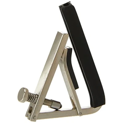 Improved model: nickel-plated metal design Adjustable thumb screw with durable metal tip Flat model for acoustic guitars - width: 65 mm Metal, nickel plated Adjustable knurled screw with long-lasting metal tip Metal, nickel plated Adjustable knurled screw with long-lasting metal tip Flat model for classic guitar: width 65 mm