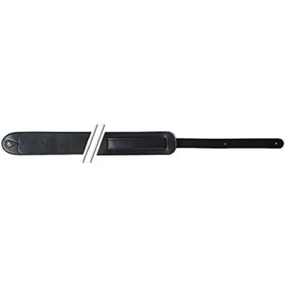 High-quality leather guitar strap with smooth surface, 6,5 cm wide, 4 mm thick, reinforced strap button Continuous side seam, brushed inside Length adjustable between 93 and 130 cm, black