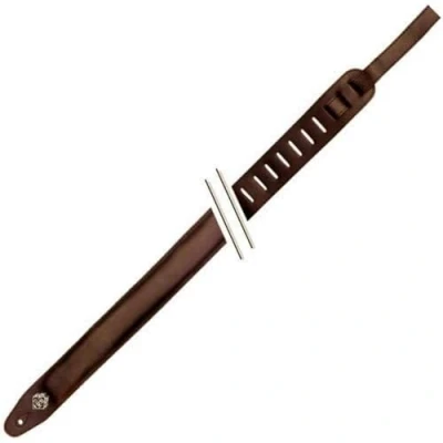 60 mm wide leather strap, 10 mm thick pad Continuous side seam, strap adjustment and button hole with reinforced seam, adjustable length 87-121 cm Genuine buckskin lining Brown