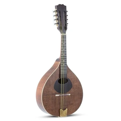 GEWA PRO ARTE ANTIQUE flat mandolin - Portuguese shape, All solid, solid Spruce top, solid Maple back and sides Inlaid wooden pickguard, Maple neck, hardwood fingerboard, 17 nickel-silver frets Nut width 31 mm, Maple bridge with hardwood surface, Scale 332 mm, length 635 mm, side width 285 mm, Made in Europe, Antique matt finish