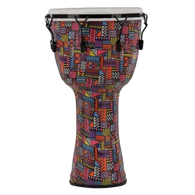 High-quality craftsmanship: GEWA Liberty Djembe with a robust PVC body for exceptional durability and easy handling. Optimal sound quality: Equipped with synthetic fiber head, it delivers clear and powerful tones, suitable for beginners and professionals. Tuning system: Mechanical (8 tuning lugs) for reliable and consistent tension. Optimal size: Diameter: 14" (35.5 cm), height: 27" (68 cm). For on the go: Weighs only 5.11 kg and impresses in the pattern Abstract, suitable for travel and performances.
