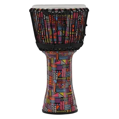 High-quality craftsmanship: GEWA Liberty Djembe with a robust PVC body for exceptional durability and easy handling. Optimal sound quality: Equipped with synthetic fiber head, it delivers clear and powerful tones, suitable for beginners and professionals. Fixed rope tuning: Equipped with 30 Rope Runners, the djembe is already professionally tuned. Optimal size: Diameter: 12" (30.5 cm), height: 23.5" (59 cm). For on the go: Weighs only 3.13 kg and impresses in the pattern Abstract, suitable for travel and performances.