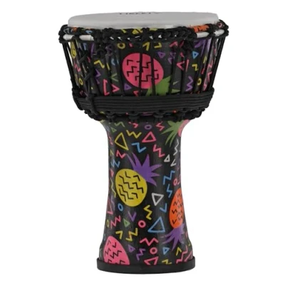 High-quality craftsmanship: GEWA Liberty Djembe with a robust PVC body for exceptional durability and easy handling. Optimal sound quality: Equipped with synthetic fiber head, it delivers clear and powerful tones, suitable for beginners and professionals. Fixed rope tuning: Equipped with 14 Rope Runners, the djembe is already professionally tuned. Optimal size: Diameter: 7" (17.8 cm), height: 12.5" (31.5 cm). For on the go: Weighs only 0.97 kg and impresses in the pattern Pineapple, suitable for travel and performances.