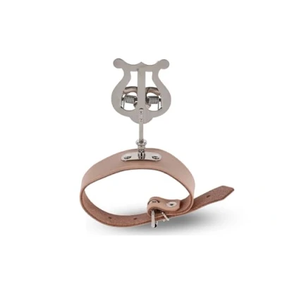 GEWA Marching Music Holder Flute Nickel Plated Small Lyra 1 Pusher Wide Leather Strap
