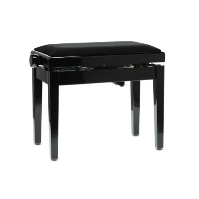 - COMFORTABLE HEIGHT ADJUSTMENT: Thanks to two high-performance gas pressure springs, the GEWA piano bench Deluxe Autolift offers easy and comfortable height adjustment, ideal for pianists of all sizes. - MASSIVE WOOD CONSTRUCTION: The GEWA piano bench is made of robust solid wood, giving it a breaking load of over 2 tonnes for long-lasting durability and reliability. - SAFE AND STABLE: With the feet fixed to the frame with M10 screw anchors, the piano bench offers a stable and safe seating surface for a working range of 40-200 kg. - HIGH QUALITY SEAT COVER: The velour seat cover on the 52x30 cm seat provides extra comfort during long hours of practice on your instrument. VERSATILITY: The hydraulic height adjustment works from a minimum weight of 40 kg and is designed for a maximum weight of 200 kg. Available in matte white, matte black, or high-gloss black, complements any piano and room seamlessly.