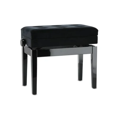 Solid wood for stability: The GEWA Piano Bench Deluxe Compartment made of solid wood offers an impressive breaking load of over 2 tonnes for maximum safety while playing. Practical music compartment: The integrated music compartment of the piano bench offers ample space for your sheet music and keeps it always within reach. High-quality velour seat cover: The elegant black velour seat cover ensures pleasant seating comfort and gives the piano bench an elegant appearance. Easy height adjustment: The smooth scissor mechanism allows for precise height adjustment from 52 to 61 cm to optimally adjust the seat to your needs. Stable attachment: The legs are securely connected to the frame with M10 screw dowels, ensuring high stability during playing.