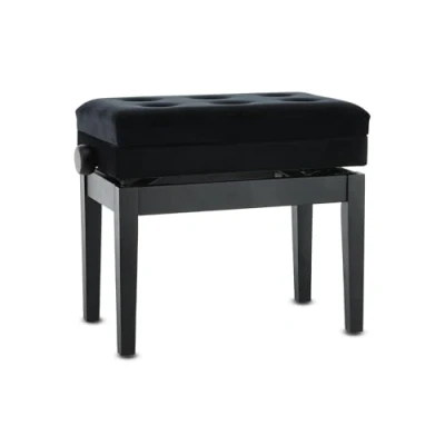 Solid wood for stability: The GEWA Piano Bench Deluxe Compartment made of solid wood offers an impressive breaking load of over 2 tonnes for maximum safety while playing. Practical music compartment: The integrated music compartment of the piano bench offers ample space for your sheet music and keeps it always within reach. High-quality velour seat cover: The elegant black velour seat cover ensures pleasant seating comfort and gives the piano bench an elegant appearance. Easy height adjustment: The smooth scissor mechanism allows for precise height adjustment from 52 to 61 cm to optimally adjust the seat to your needs. Stable attachment: The legs are securely connected to the frame with M10 screw dowels, ensuring high stability during playing.