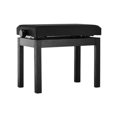 Stability and Design: Solid wood and wood grain decor give the GEWA Piano Bench Student elegance and durability Robust Construction: Stable legs, firmly screwed to the seat frame, provide secure support and stability while playing Comfortable Seat: Faux leather seat cover with a generous seating area of 52 x 30 cm ensures comfortable seating Easy Adjustment: Smooth height adjustment from 48-57 cm via precise scissor mechanism allows for individual seat height Versatile Colour Options: Available in black matt and white matt, matching any piano and interior style. Contents: Piano bench black matt