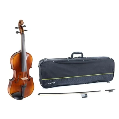High quality: The back and sides are made of solid European maple, while the solid European spruce top guarantees first-class sound quality. Hand lacquer finish: The brown-amber coloured natural resin lacquer is carefully applied by hand, creating an aesthetically pleasing and protective surface. Precise craftsmanship: Each viola is unique thanks to the hand-lacquered surface (slight colour variations possible), the inlaid shavings, the ebony set and the original Aubert bridge, guaranteeing high-quality workmanship and detailed craftsmanship. High-quality equipment: The viola has a Wittner fine tuning tailpiece, Thomastik Infeld AlphaYue strings, ebony chinrest and is supplied with rosin. The option of a massaranduba or carbon bow with natural hair offers individual choice. Complete set: The viola set is supplied in a moulded case or case with screw-on cover, rucksack straps and reflectors. Thanks to the ready-to-play design from the GEWA string workshops, the instrument is ready to play and has been visually and technically checked before despatch. Scope of delivery: Viola 31.0 cm - 1/4, viola case, carbon fibre bow.