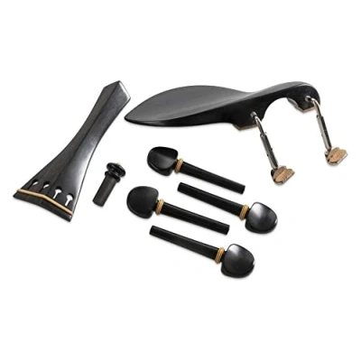 AmazonGEWA 4-piece ebony accessory set for violin 4/4 Finest selected woods 4 GEWA pegs with hoops (boxwood hoops) Tailpiece: English model with boxwood hoops Chinrest: Guarneri model with high-quality screws, end button