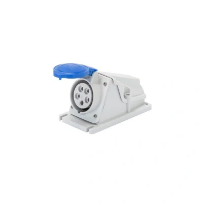 Gewiss GW62477 Low Voltage Screw Wiring 90 Degree Angled Surface Mounting Socket Outlet, IP44, 6 Reference, 2P+E Pole, 200V 250V, 16 A, 50 Hz/60 Hz, Blue