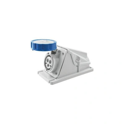 Gewiss GW62499 Low Voltage Screw Wiring 90 Degree Angled Surface Mounting Socket Outlet, IP67, 2P+E Pole, 200V 250V, 16 A, 50 Hz/60 Hz, Blue