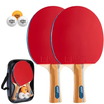 GEWO Rave Speed Table Tennis Bat Set Controlled Beginner with 3 Balls Complete ITTF Coating, High Control and Speed, Concave, 2 mm Thick Sponge