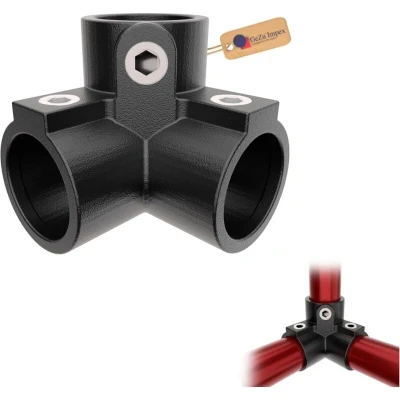 ManoMano3-Way Corner Joint Design Our 3-way corner elbow tube connector features enclosed corner joints, making it perfect for straight and level guardrails. It provides a precise 90° connection between the top rail and vertical components, ensuring stability and structural integrity. Versatile Tube Clamp System 3-way tube joints are ideal for joining tubes to create various designs, from simple table frames to timber or scaffolding structures, and beyond. The versatility of this system allows users to explore numerous creative and functional applications. Superior Corrosion Resistance The hot-dip galvanized coating makes the corner pipe fitting waterproof, corrosion-resistant, and durable while offering a smooth, shiny finish. Made from SG cast iron with a black powder coating, this 3-way tube fitting connector can withstand heavy loads and is suitable for outdoor use. The black powder coating adds another layer of protection against moisture and UV damage, resists scratches and dents, and