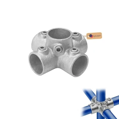 ManoManoConnects 4 Tubes at 90° The 4-way cross tube clamp joins four horizontal tubes to a central vertical tube at precise 90° angles. This tube clamp has four sockets for horizontal tubes and one central socket for the vertical tube. The vertical tube passes through the center, while the four horizontal tubes connect at 90° angles. This design creates a strong, balanced framework. Rust-Resistant Hot-Dip Galvanised Finish Our key clamp 4-way cross features a hot-dip galvanised coating that protects it from rust and ensures durability, even in wet, humid, or outdoor conditions. This long-lasting finish reduces the need for frequent replacements or extra maintenance. Whether used indoors or outdoors, this pipe fitting will maintain its strength and reliability for years. Quick Assembly with Grub Screws With pre-drilled stainless steel grub screws, this 4-way middle rail cross key clamp is easy to install without the need for special tools. Simply insert the tubes into the four sockets and