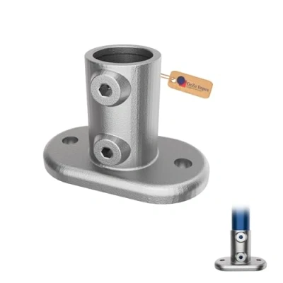 ManoManoStructural Support The key clamp base plate provides essential structural support for upright tubes in handrails and guardrails. It ensures stability and safety by securely anchoring the posts to the ground with base plate fittings. Installation Flexibility With two bolt holes, this tube clamp base plate can be easily installed on flat surfaces using anchor fixings. This design ensures a secure and durable setup. For guardrails, position the holes across the guardrail line to maximize strength and stability. Tube Compatibility Compatible with 42mm tubes, our round base plate works with various clamp pipe fittings for railing systems. Whether you’re setting up a new handrail or reinforcing an existing one, this base plate offers a reliable and strong connection. Long-Lasting Performance Made from SG cast iron with a hot-dip galvanized finish, this heavy-duty clamp base plate resists corrosion and can withstand heavy loads. Thanks to its protective coating, it is suitable for both