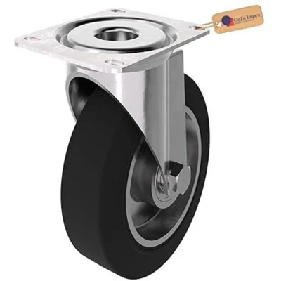 ManoManoHEAVY DUTY LOAD CAPACITY Our heavy-duty caster wheels are designed to handle heavy weights with ease, featuring reliable steel construction. The mounting plate evenly distributes weight and resists bending or breaking, even under heavy loads. Perfect for warehouses and industrial equipment that require the ability to move heavy loads without wheel failure or damage to the frame. SMOOTH ROLLING ON ANY SURFACE Solid rubber swivel caster wheels protect your floors from scratches while also dampening vibrations and reducing noise. These wheels won’t leave scuff marks on tile, linoleum, brick, or carpeted surfaces. They roll smoothly on any surface, ensuring that both your equipment and flooring remain undamaged. 360-DEGREE SWIVEL MOVEMENT With a full rotation swivel design, these caster wheels allow for easy direction changes without the need to lift or force your equipment. Heavy-duty casters rotate easily and won't get stuck during use. The pre-drilled mounting plate ensures secure