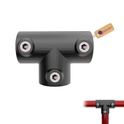 ManoManoSecure 90° Tee Joint Connection A long tee clamp connects two tubes at a 90-degree angle, joining vertical posts to the top rails in handrails and guardrails. This 90° tee clamp features three sockets for secure tube connections. A single horizontal tube passes through the T-section, ensuring a stable and secure connection. This key clamp fitting is ideal for use on level surfaces to join uprights to horizontal rails. Twin Grub Screw Design The dual grub screw system ensures that tubes stay firmly in place, preventing movement over time. When used horizontally, it connects two tubes, while in a vertical position, it reinforces the structure to bear heavy loads. Stainless steel grub screws (Allen screws) are provided with all pipe-fitting connectors. This long tee clamp allows you to join tubes at the top part of the tee using two grub screws, ensuring a secure fit. Durable Hot-Dip Galvanised & Black Powder Finish This long tee connector is made from heavy-duty SG cast iron with a