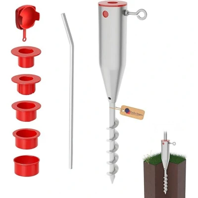 AmazonPRODUCT - Universal Screw in ground sleeves can be used individually and usually find their place in the garden to set up, for example, parasols or rotary clothes dryers with tube diameters of 25-65 mm. FEATURES - Thanks to a good selection of reducing rings included with the ground sleeve, different pipe diameters can be screwed into the sleeve. USABILITY - Installing our Screw in sleeves is super easy and takes very little time. The ground sleeve is simply screwed into the ground using the Screw in tool. TECHNICAL DATA - Total height: 57 cm - Type material: thermally galvanized steel - Designed for building of Ø 24 mm, 38 mm, 42 mm, 50 mm and 55 mm - With screw rod for quick and easy assembly - With plastic cap and protective cover rain.