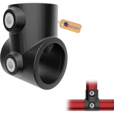 GeZu Impex Short Tee Tube Clamp Ø 42 mm Hot Dip Galvanised Black Powder Coated Single Socket T Connector Pipe Fitting for Tubular Assemblies